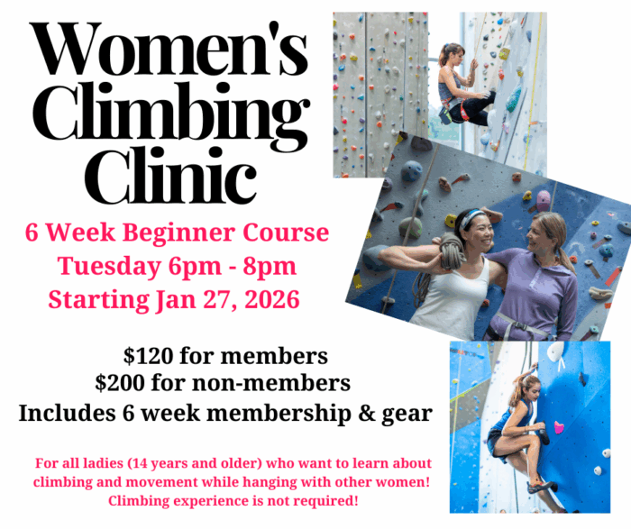 Sign up for the Womens Beginning Climbing Clinic by clicking here!