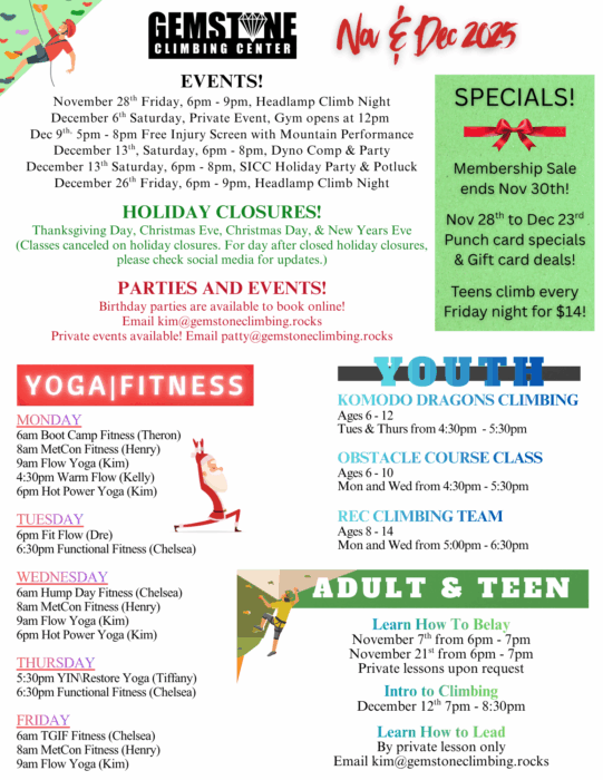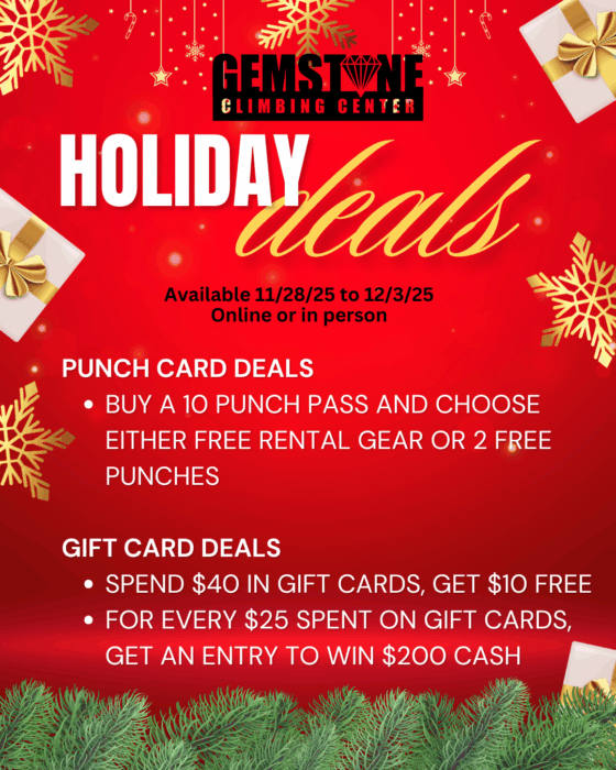 For any questions contact Kim or Patty at 208-329-7257 or kim@gemstoneclimbing.rocks or patty@gemstoneclimbing.rocks.